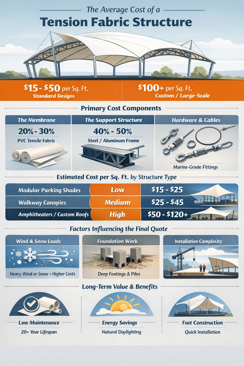 সরাসরি উত্তর: টেনশন ফ্যাব্রিক স্ট্রাকচারের গড় খরচ কত?